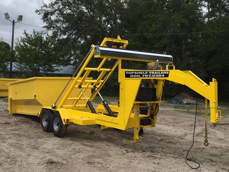 A roll-off bin on a job site looks cleaner and has a lower chance of theft than a regular dump trailer. Roll Off Dump Trailer For Sale in Florida. 175 K winch with wireless remote KTI 10 Ton Hydraulic System.